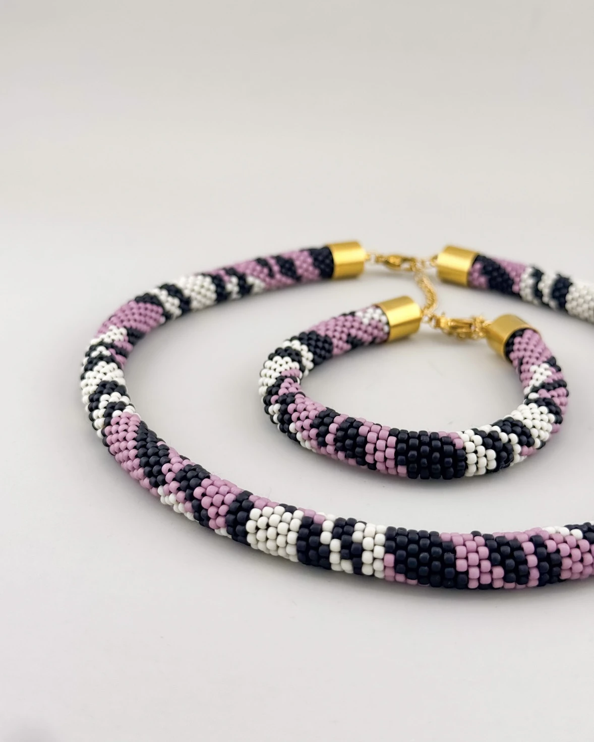 Każda z nich dziergana jest na szydełku z tysięcy maleńkich, szklanych koralików. Proces tworzenia jednej pląteczki to kilka godzin drobiazgowej pracy – wymagającej, precyzyjnej i czasochłonnej. To prawdziwe rękodzieło, które możesz układać po swojemu – minimalistycznie lub maksymalnie, prosto albo kolorowo.